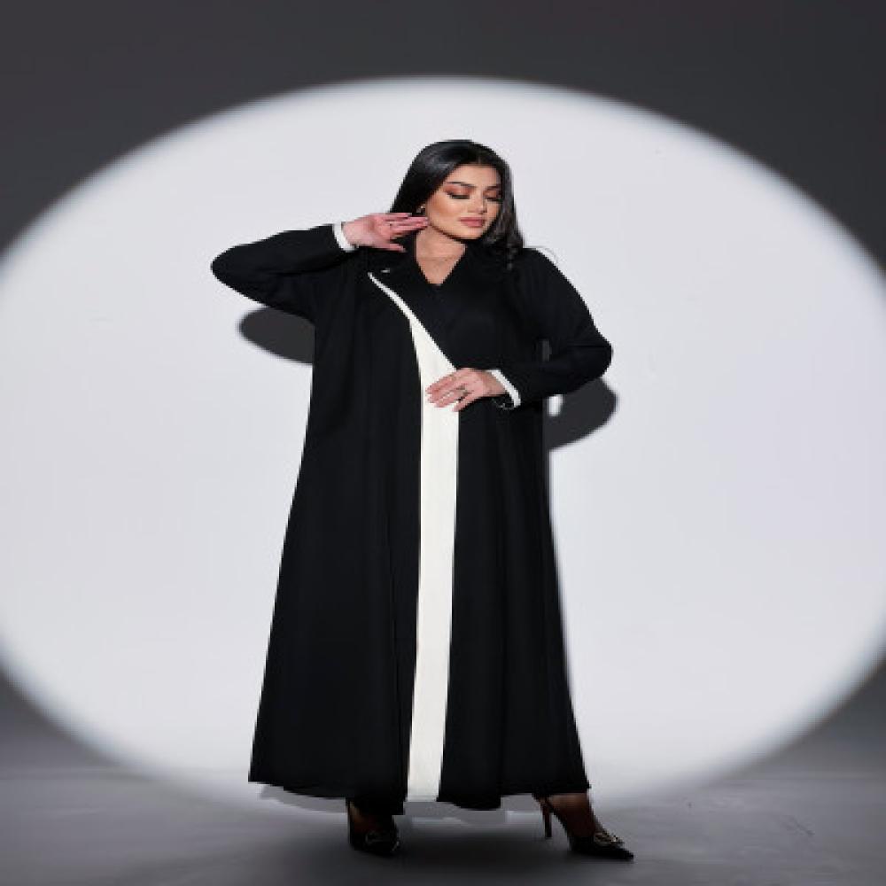 عبايه بليزر كتان اصلي مع قصه اماميه بالابيض تعتمدها المرأه الانيقه والعمليه