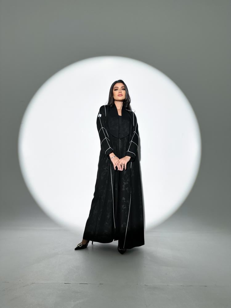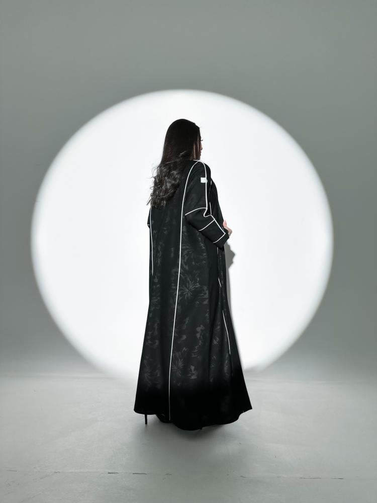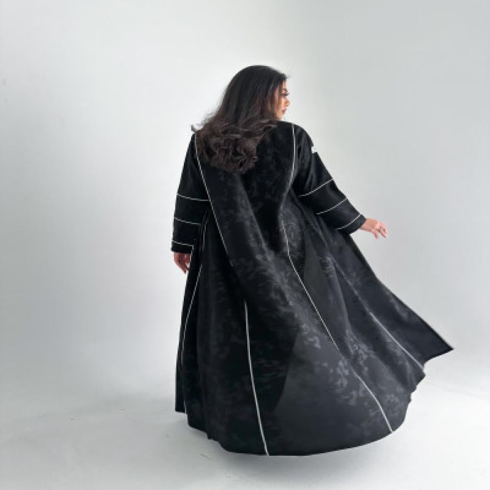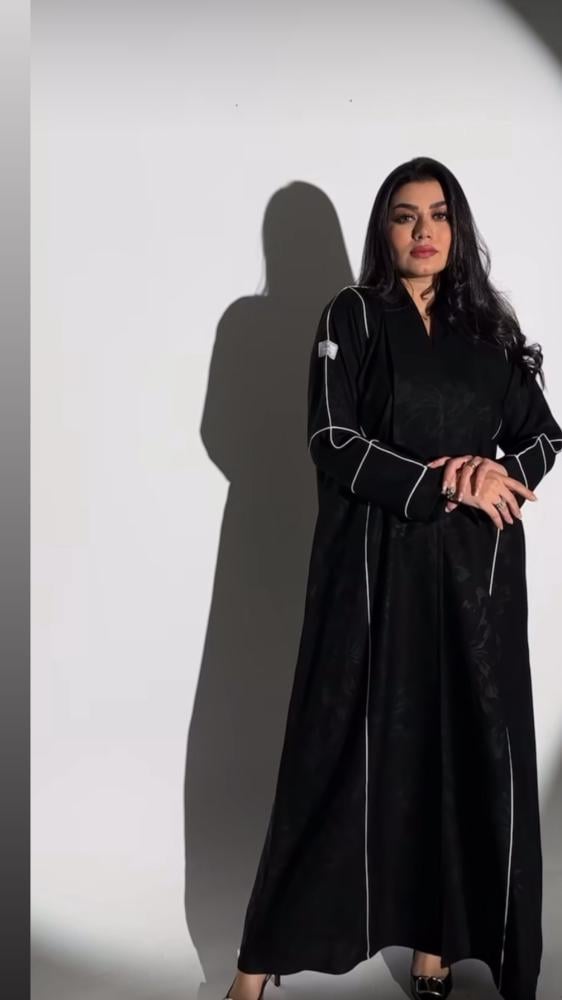- عبايه سودا خامة كتان مشجر تضفي لمسة من الفخامة والعصرية.