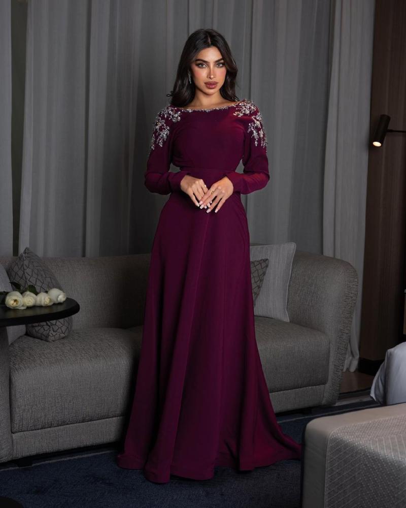 - الأكمام الطويلة تضفي لمسة من الأناقة والفخامة.