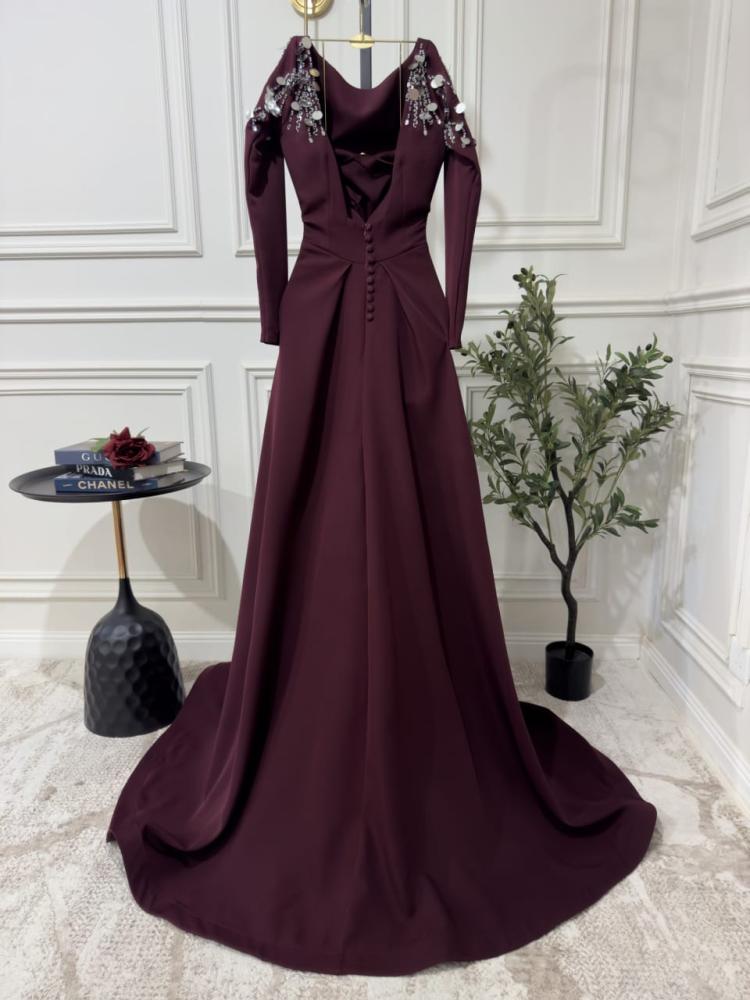 - فستان عودي مطرز إطلالة فاخرة وساحرة!